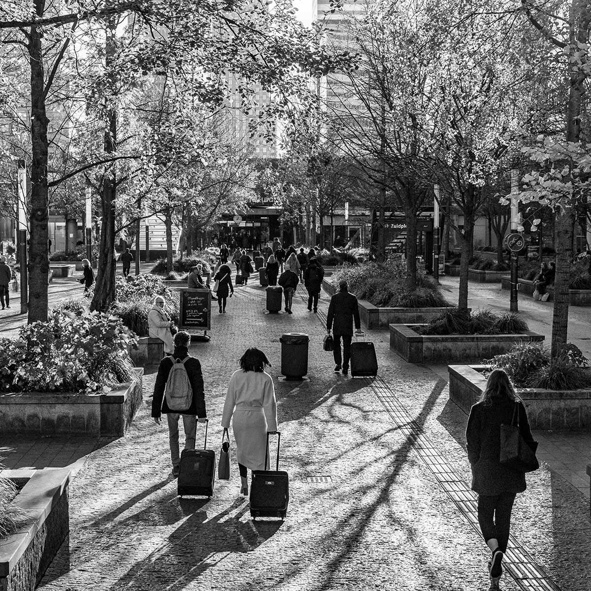 De stad gromt, piept en kraakt onder het gewicht van de dagelijkse drukte, de grote en kleine transacties en de snelheid van het beroepsleven. In de hoge torens van De Nederlandsche Bank wordt het grote geld beheerd en in de tram wordt het stukje bij beetje weer uitgegeven aan webshops vol mooie aanbiedingen.